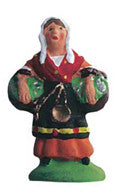Colorfully dressed, she has a portable scale (copper steelyard) fastened to her belt and with a proud humility commonly brings a bountiful gift of not one, but two, basketfuls of fish to the manger. As a fishwife, or fishlass, she is a woman who sells or works with fish. She is not necessarily a married woman, as the word "wife" here simply means woman. She is the female version of a fishmonger. Of course, she may indeed be the fishmonger's wife. She may be rough around the edges, but she is a hearty soul - one who has existed in Provencal life "forever."