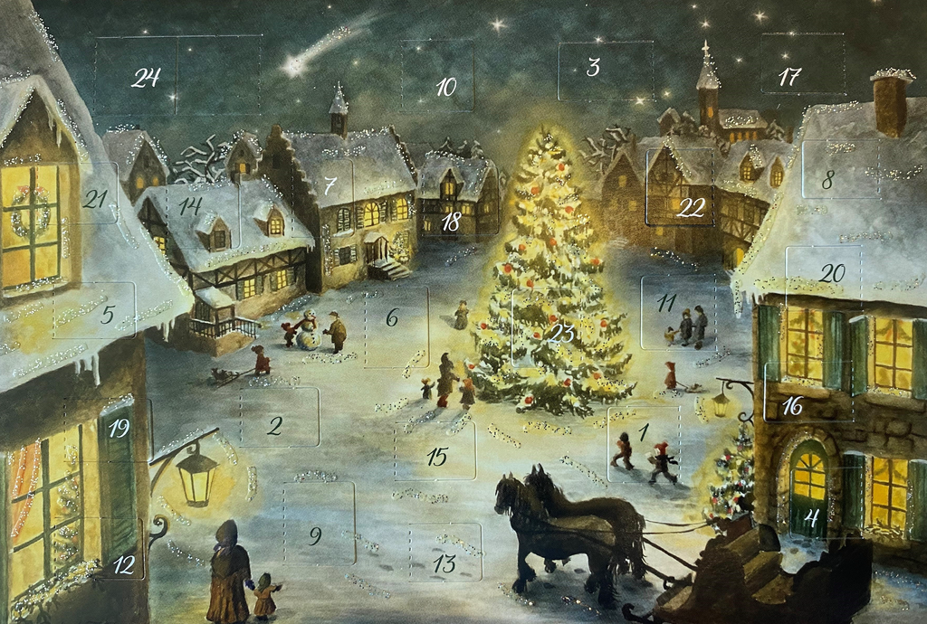 Village Christmas Tree Advent Calendar GREETING CARD with envelope